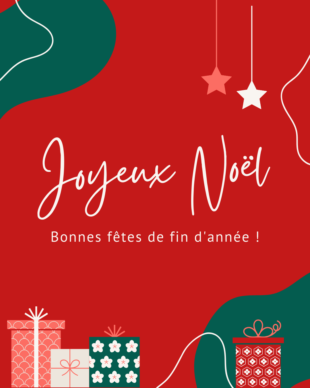 Nous vous souhaitons de belles fêtes de fin d’année.